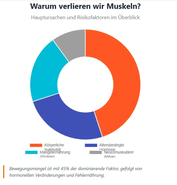 Bereits ab etwa dem 30. Lebensjahr verliert der Körper langsam Muskelmasse. Ab dem 60. Lebensjahr beschleunigt sich dieser Prozess deutlich.